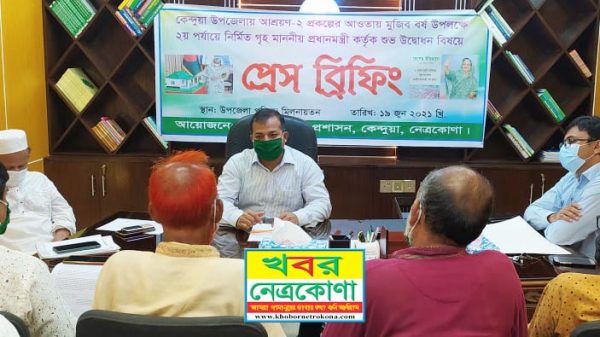 ২০ জুন ভিডিও কনফারেন্সের মাধ্যমে আশ্রয়ণ-২ প্রকল্পের কার্যক্রমের শুভ উদ্বোধন করবেন প্রধানমন্ত্রী শেখ হাসিনা। এ বিষয়ে নেত্রকোনার কেন্দুয়ায় উপজেলা নির্বাহী কর্মকর্তা মোঃ মঈন খন্দকার প্রেস ব্রিফিং করেছেন। মুজিব বর্ষ উপলক্ষে মাননীয় প্রধানমন্ত্রীর উদ্যোগে আশ্রয়ণ-২ প্রকল্পের মাধ্যমে ২য় পর্যায়ে নতুন ঠিকানা পাচ্ছেন কেন্দুয়ার ৫৬ জন ভূমিহীন। শনিবার বিকাল ৫ টায় এ বিষয়ে গনমাধ্যম কর্মীদের উপস্থিতিতে উপজেলা নির্বাহী কর্মকর্তার কার্যালয়ে এ প্রেস ব্রিফিং অনুষ্ঠিত হয়েছে।
