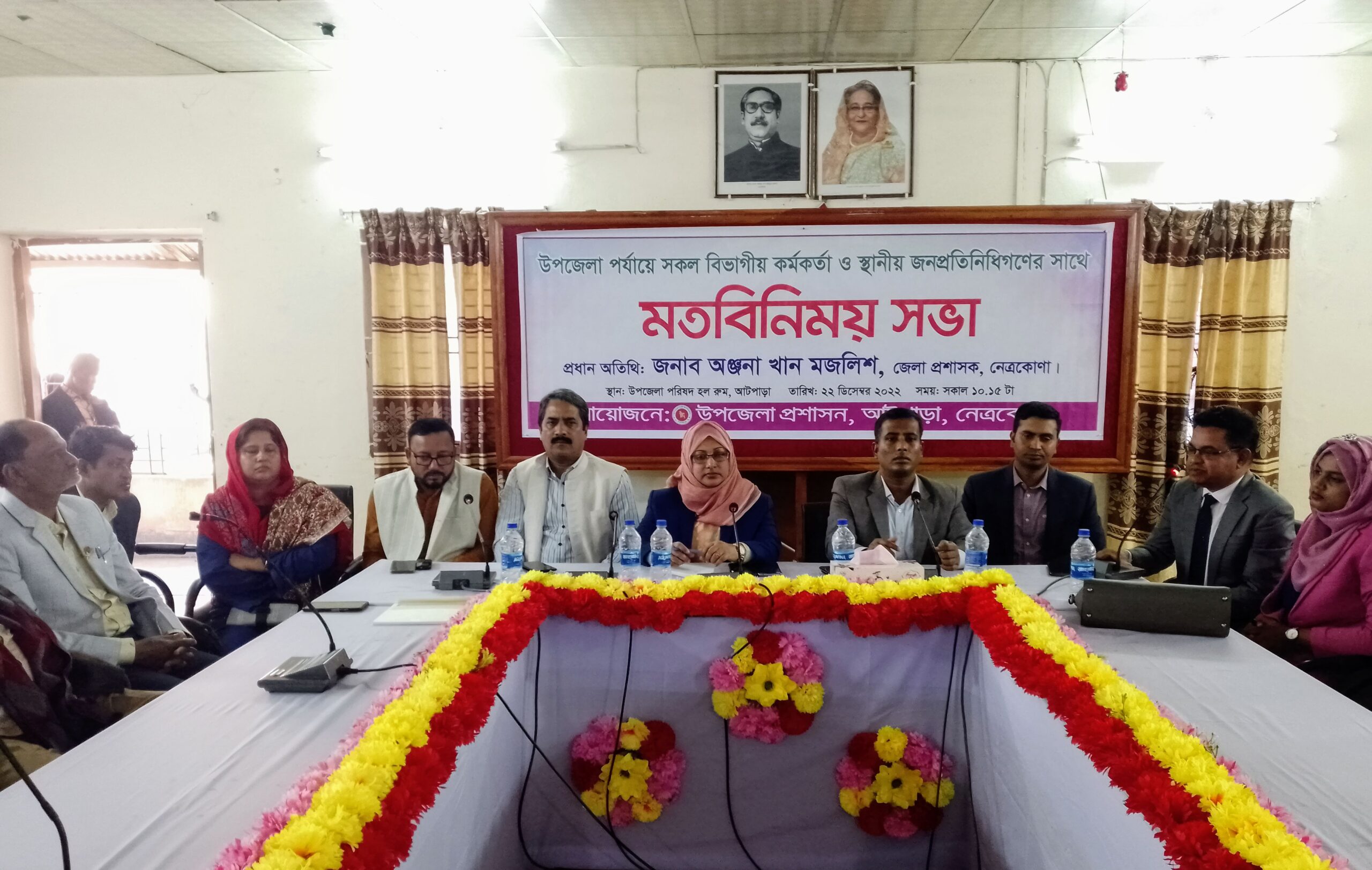 নেত্রকোনার আটপাড়া উপজেলা পর্যায়ে সকল বিভাগীয় কর্মকর্তা ও স্থানীয় জনপ্রতিনিধিদের সাথে মতবিনিময় সভা অনুষ্ঠিত হয়েছে।