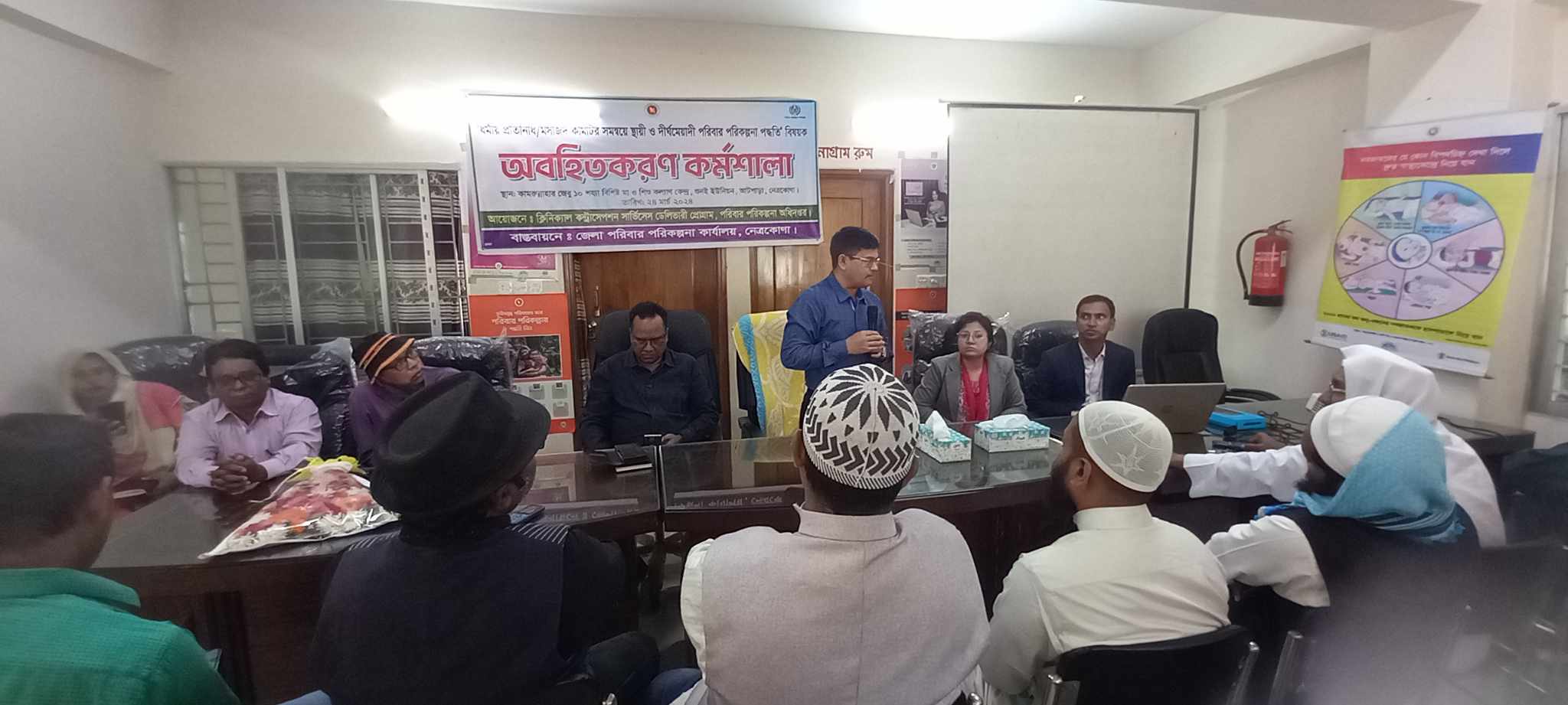 নেত্রকোনার আটপাড়ায় ধর্মীয় প্রতিনিধি/মসজিদ কমিটির সমন্বয়ে স্থায়ী ও দীর্ঘ মেয়াদী পরিবার পরিকল্পনা পদ্ধতি বিষয়ক 'অবহিতকরণ কর্মশালা' অনুষ্ঠিত হয়েছে। রোববার সকাল ১১টায় জেলা পরিবার পরিকল্পনা কার্যালয় নেত্রকোনা বাস্তবায়নে, পরিবার পরিকল্পনা অধিদপ্তরের ক্লিনিক্যাল কন্ট্রাসেপশন সার্ভিসেস ডেলিভারী প্রোগ্রাম পরিবার পরিকল্পনা অধিদপ্তর আয়োজনে উপজেলার শুনই ইউনিয়নের কামরুন্নাহার জেবু ১০ শয্যা বিশিষ্ট মা ও শিশু কল্যাণ কেন্দ্রে