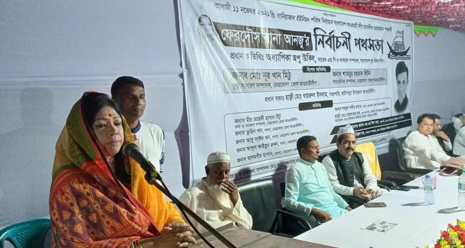 প্রতিটি নির্বাচনী জনসভায় আগামী ১১ নভেম্বরের নির্বাচনের দিন সপরিবারে ভোট কেন্দ্রে উপস্থিত হয়ে নৌকা মার্কায় ভোট দিয়ে পুনরায় আটপাড়ার ৭ টি ইউনিয়নেই চেয়ারম্যান নির্বাচিত করার আহবান জানাচ্ছেন অধ্যাপক অপু উকিল।৩ নভেম্বর বিকাল ৩ টায় আটপাড়ার বানিয়াজান ইউনিয়ন পরিষদ নির্বাচনে বাংলাদেশ আওয়ামীলীগের মনোনীত নৌকা প্রতীকের চেয়ারম্যান পদপ্রার্থী ফেরদৌস রানা আন্জুর নির্বাচনী পথসভা অনুষ্ঠিত হয়েছে। এতে প্রধান অতিথি হিসেবে বক্তব্য রাখেন সাবেক সংসদ সদস্য বাংলাদেশ যুব মহিলালীগের সাধারণ সম্পাদক অধ্যাপিকা অপু উকিল। প্রধান বকৃতা হিসেবে বক্তব্য রাখেন আটপাড়া উপজেলা আওয়ামীলীগের সভাপতি ও উপজেলা চেয়ারম্যান হাজ্বী মোঃ খায়রুল ইসলাম। এছাড়াও বিশেষ অতিথি হিসেবে বক্তব্য রাখেন নেত্রকোনা জেলা আওয়ামীলীগের যুগ্ন সাধারণ সম্পাদক মোঃ নূর খান মিঠুন,সাংগঠনিক সম্পাদক শামছুর রহমান লিটন। এছাড়াও চেয়ারম্যান পদপ্রার্থী ফেরদৌস রানা আনজু বক্তব্য রাখেন। অতিথি হিসেবে বক্তব্য রাখেন আটপাড়া উপজেলা আওয়ামীলীগের সহ-সভাপতি হাজ্বী মোঃ মোজাম্মেল হক, সুলতান উদ্দিন, নিরঞ্জন পাল,মহিলা নেত্রী নাসরিন আক্তার।