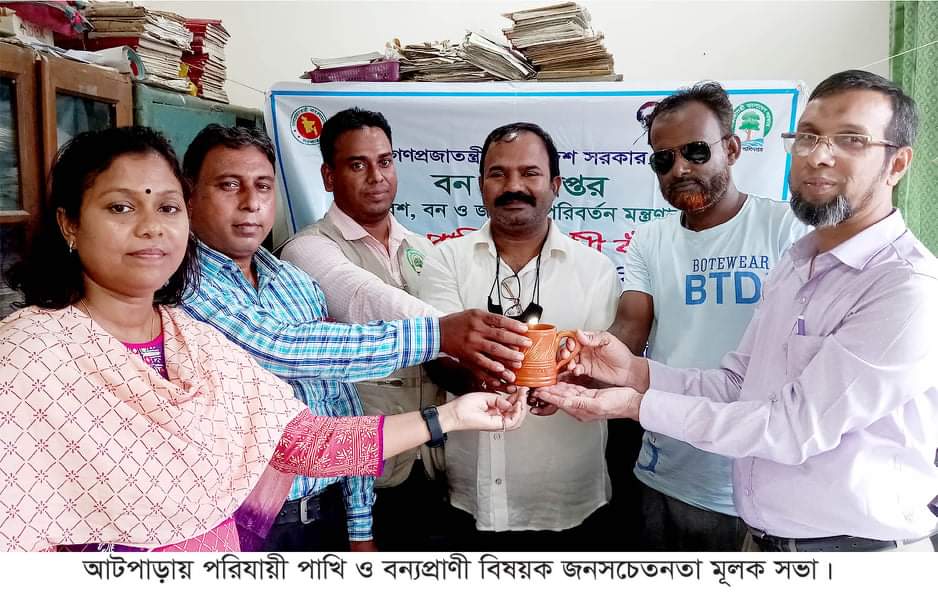 নেত্রকোণার আটপাড়ায় উপজেলা প্রাণিসম্পদ দপ্তর ও ভেটেরিনারি হাসপাতালের সম্মেলন কক্ষে বন অধিদপ্তরের পরিবেশ, বন ও জলবায়ু পরিবর্তন মন্ত্রণালয়ের আয়োজনে “আমরা পারি বন্যপ্রাণী বাঁচাতে” স্লোগানকে সামনে রেখে আজ সোমবার পরিযায়ী পাখি ও বন্যপ্রাণী বিষয়ক জনসচেতনতা মূলক সভা অনুষ্ঠিত হয়। সভায় সভাপত্বি করেন বীর মুক্তিযোদ্ধা লিয়াকত আলী ফকির। সভায় উপস্থিত ছিলেন, বন্যপ্রানী অপরাধ দমন ইউনিটের পরিচালক, এ.এস.এম জহির উদ্দিন আফন, পরিদর্শক, নার্গিস সুলতানা, জুনিয়র ওয়াইল্ড লাইফ স্কাউট মো: সাদেকুল ইসলাম, বীর মুক্তিযোদ্ধা মো: গিয়াস উদ্দিন মাষ্টার, উপজেলা প্রেসক্লাবের সভাপতি মো: জহিরুল ইসলাম খান হীরা, সম্পাদক মো: আসাদুজ্জামান খান সোহাগ, উপজেলা শ্রমিক লীগ সভাপতি অমল দত্ত সহ সুশীল সমাজের প্রতিনিধি ও উপজেলার বিভিন্ন পর্যায়ের ব্যবসায়ীগণ প্রমূখ। সভায় পরিযায়ী পাখি ও বন্যপ্রাণী বিষয়ক জনসচেতনতার উপর বিস্তারিত আলোচনা করা হয়।