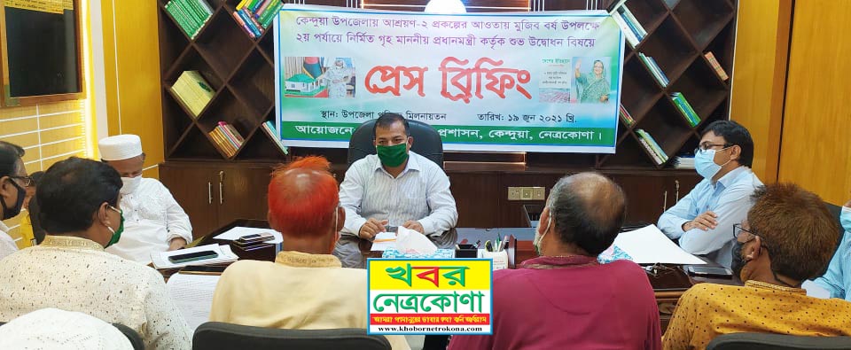 ২০ জুন ভিডিও কনফারেন্সের মাধ্যমে আশ্রয়ণ-২ প্রকল্পের কার্যক্রমের শুভ উদ্বোধন করবেন প্রধানমন্ত্রী শেখ হাসিনা। এ বিষয়ে নেত্রকোনার কেন্দুয়ায় উপজেলা নির্বাহী কর্মকর্তা মোঃ মঈন খন্দকার প্রেস ব্রিফিং করেছেন। মুজিব বর্ষ উপলক্ষে মাননীয় প্রধানমন্ত্রীর উদ্যোগে আশ্রয়ণ-২ প্রকল্পের মাধ্যমে ২য় পর্যায়ে নতুন ঠিকানা পাচ্ছেন কেন্দুয়ার ৫৬ জন ভূমিহীন। শনিবার বিকাল ৫ টায় এ বিষয়ে গনমাধ্যম কর্মীদের উপস্থিতিতে উপজেলা নির্বাহী কর্মকর্তার কার্যালয়ে এ প্রেস ব্রিফিং অনুষ্ঠিত হয়েছে।
