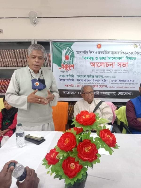 নেত্রকোণা জেলা গ্রন্থগারের আয়োজনে শহিদ দিবস ও আর্ন্তজাতিক মাতৃভাষা দিবস উপলক্ষে বঙ্গবন্ধু ও ভাষা আন্দোলন বিষয়ক আলোচনা সভা অনুষ্টিত হয়।