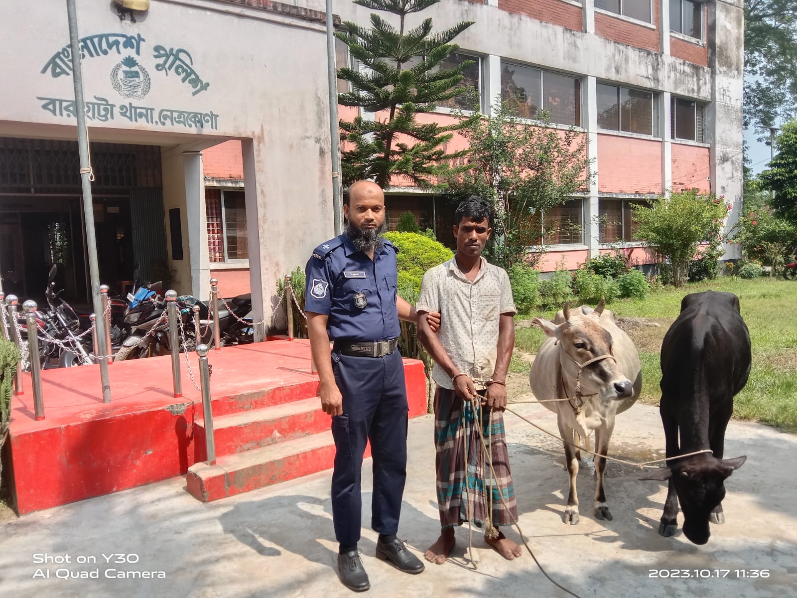 নেত্রকোনার বারহাট্টায় পুলিশের অভিযান ২টি গরুসহ এক চোর আটক