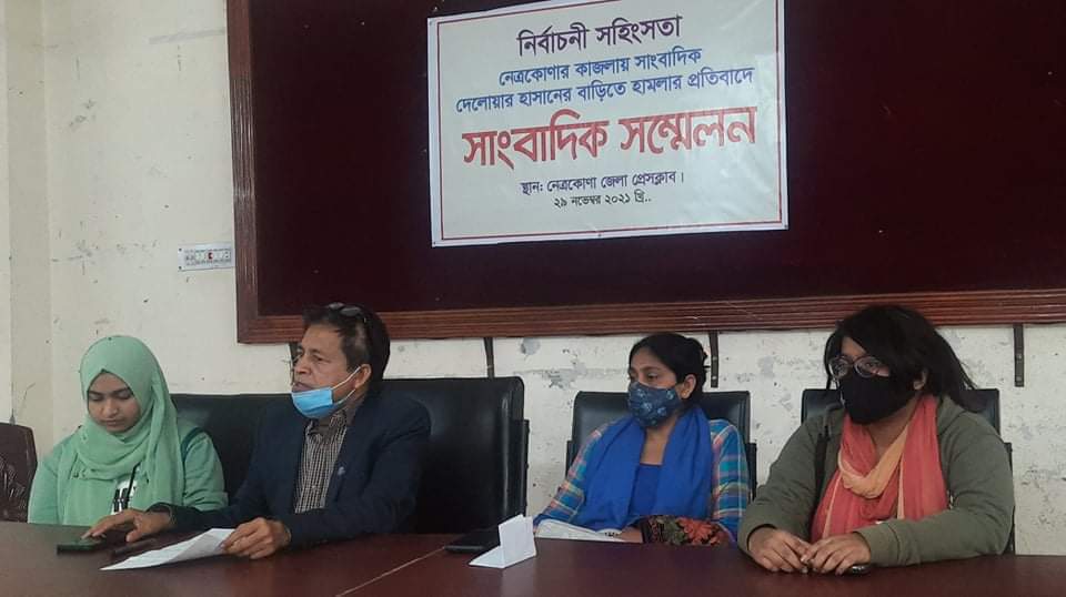 নেত্রকোনায় নিবার্চন পরর্বতী সহিংসতার অভিযোগে সংবাদ সম্মেলন