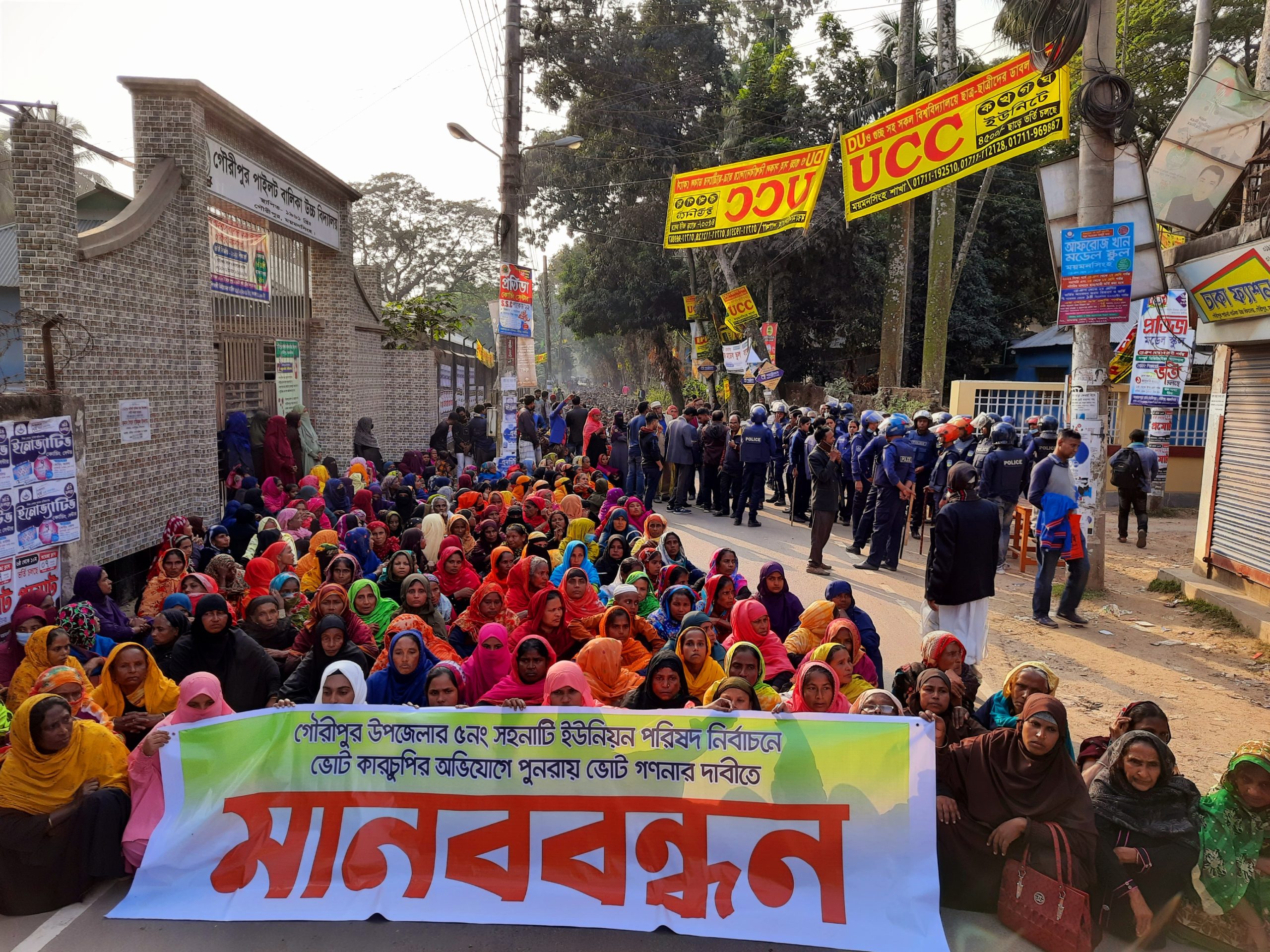 পুনরায় ভোট গননার দাবীতে ময়মনসিংহে সংবাদ সম্মেলন, গৌরীপুরে স্মারকলিপি, মানববন্ধন ও বিক্ষোভ