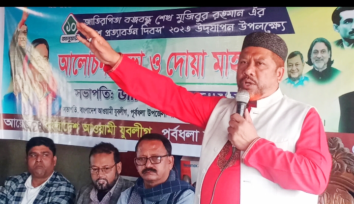 বঙ্গবন্ধুর স্বদেশ প্রত্যাবর্তন দিবস উপলক্ষে নেত্রকোণার পূর্বধলায় যুবলীগের আলোচনা সভা ও দোয়া মাহফিল