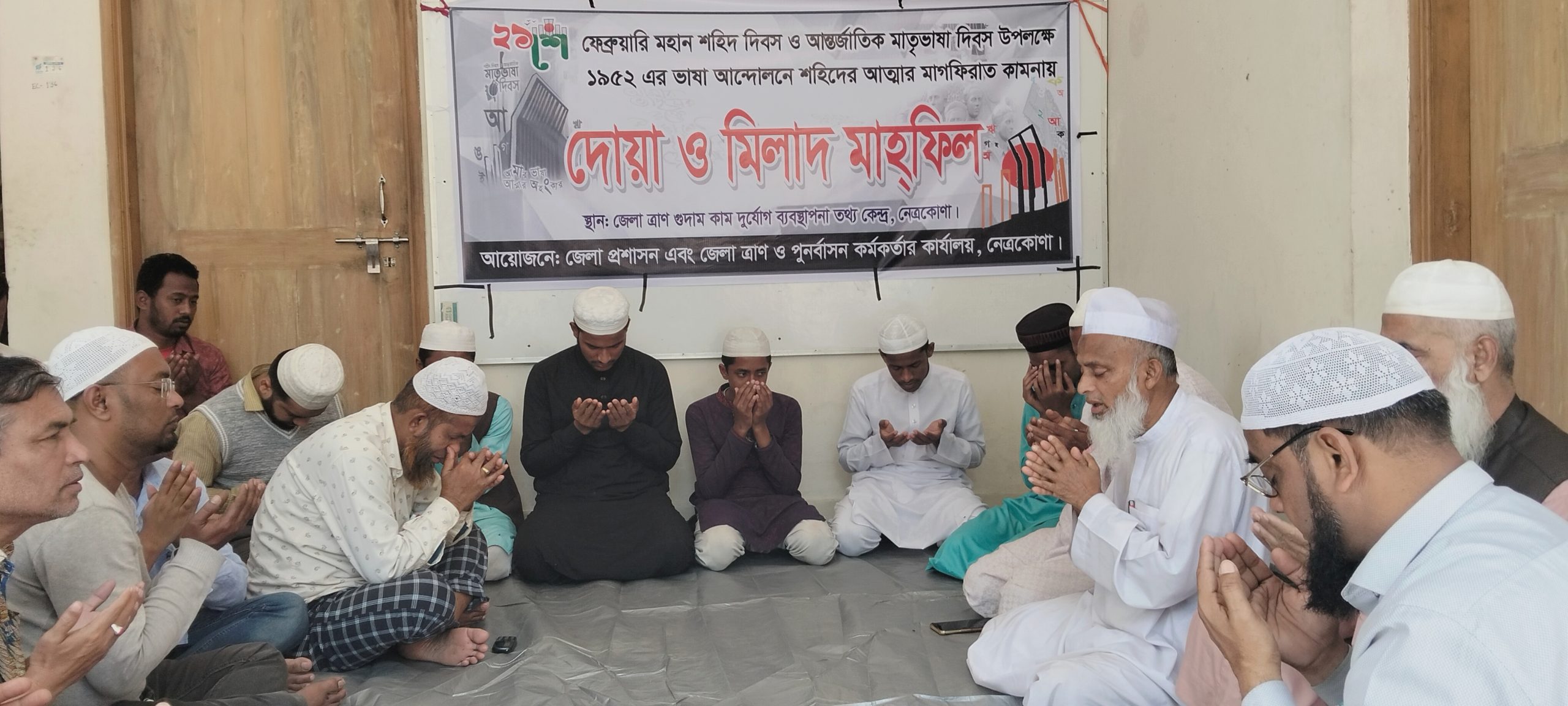 ভাষা শহীদদের আত্মার মাগফিরাত কামনায় নেত্রকোনায় জেলা ত্রান ও পুনর্বাসন অফিসে উদ্যোগে দোয়া ও মিলাদ মাহফিল
