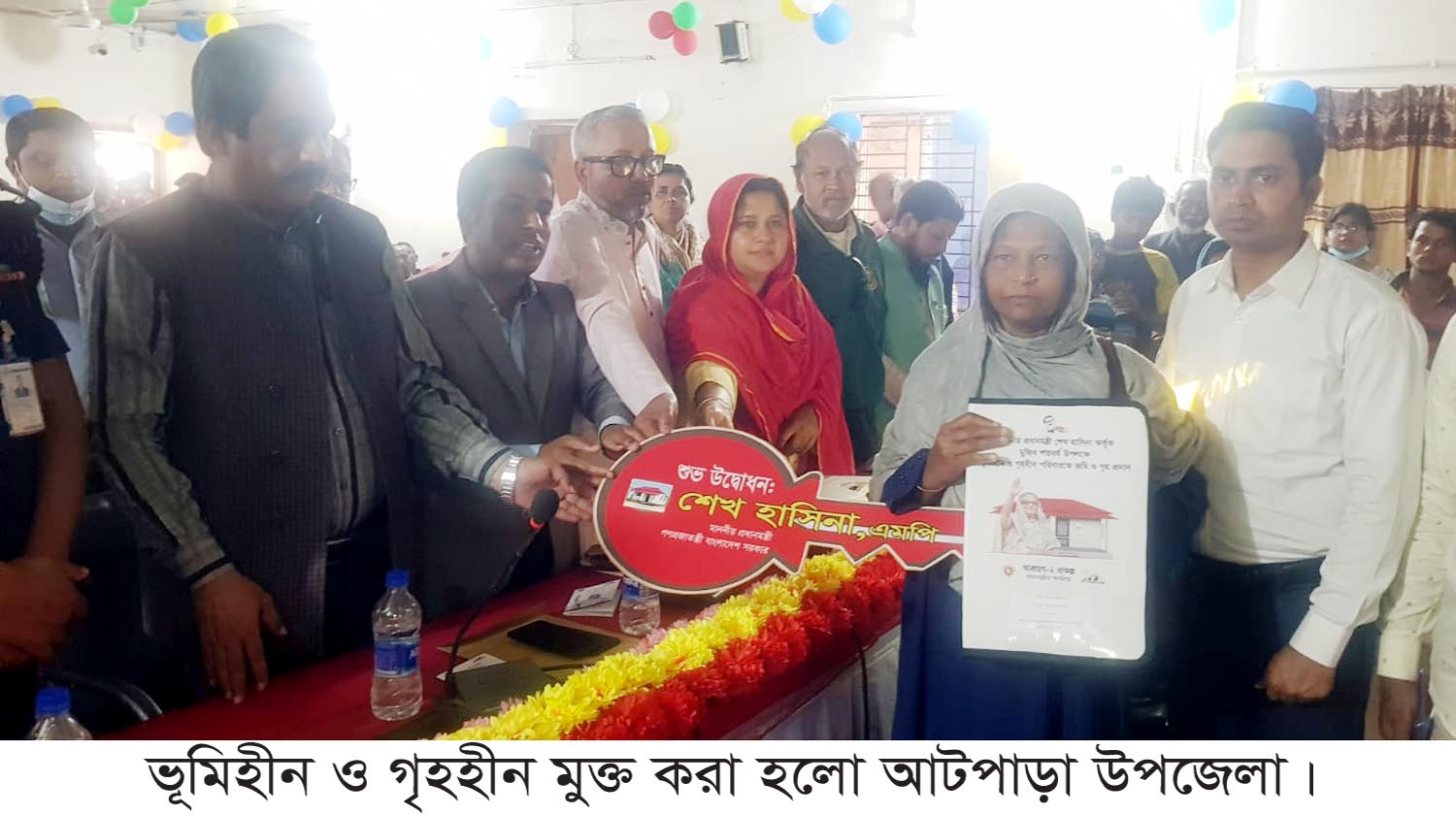 স্বাধীনতার যুদ্ধে যাঁদের অসীম সাহসিকতা ও ত্যাগ রয়েছে তাঁদের জন্য তিনি বিভিন্ন পদক্ষেপ গ্রহণ করেছেন। প্রধানমন্ত্রী হিসেবে তিনি বাংলাদেশকে ভূমিহীন ও গৃহহীন মুক্ত করার প্রত্যয় ব্যক্ত করেছিলেন। এরই ধারাবাকিতায় তিনি মুজিববর্ষ উপলক্ষ্যে আটপাড়া উপজেলা ‘ক’ শ্রেণির ভূমিহীন ও গৃহহীন মুক্ত হিসেবে বিভিন্ন পর্যায়ে ২৭৭টি পাকা বাড়ি নির্মাণ করা হয়েছে। আজ বুধবার সকাল ১০:১৫ মিনিটে মাননীয় প্রধানমন্ত্রী শেখ হাসিনা নেত্রকোণা জেলার ৯টি উপজেলার মধ্যে আটপাড়াকে ভিডিও কনফারেন্সের মাধ্যমে ভূমিহীন ও গৃহহীন মুক্ত হিসেবে ঘোষণা করেন।