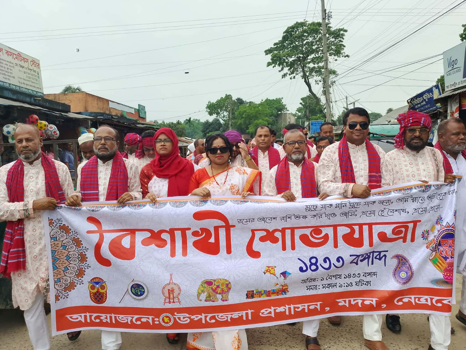 মদনে বর্ণাঢ্য আয়োজনে পহেলা বৈশাখ উদযাপন, শোভাযাত্রায় মানুষের ঢল
