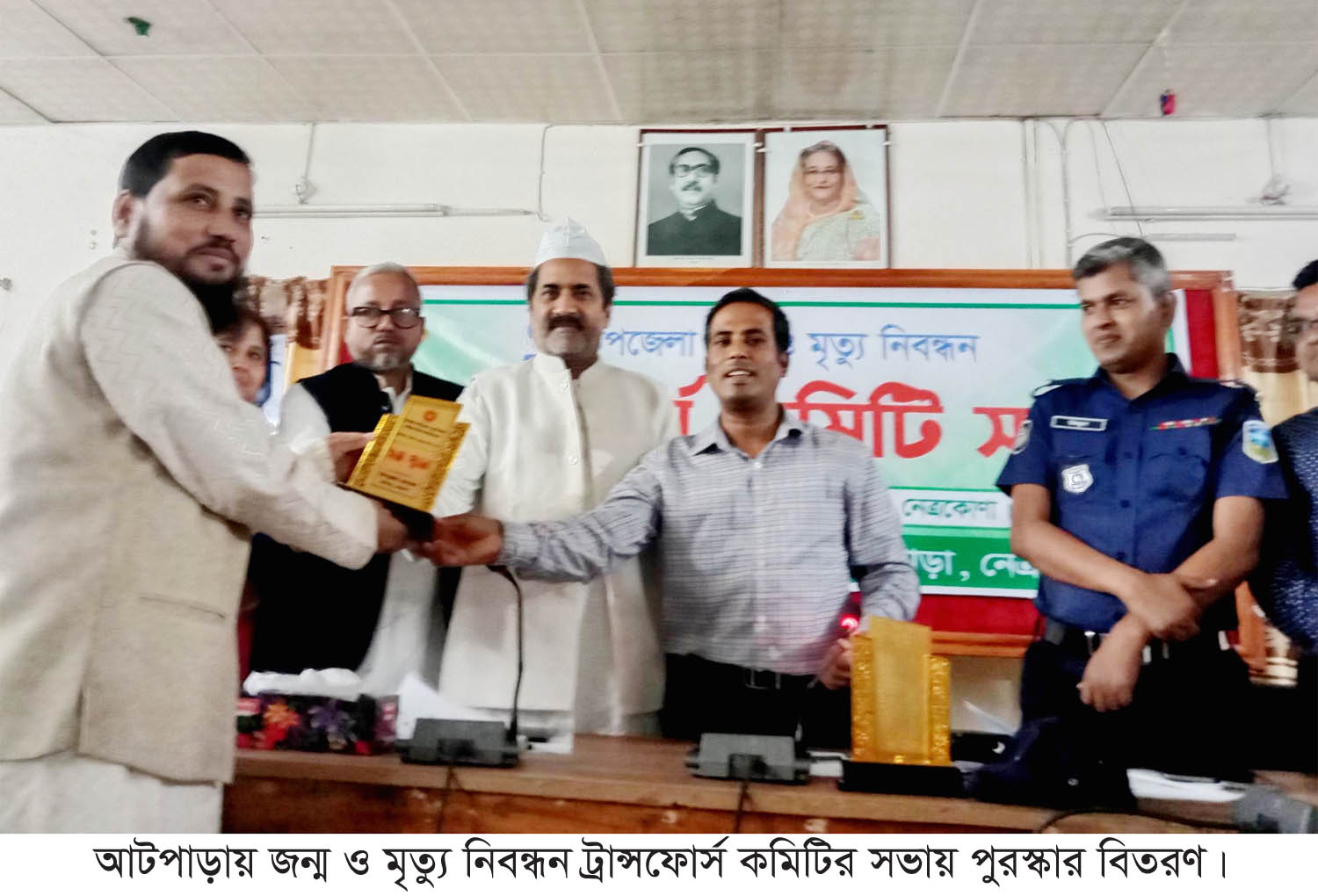 বৃহস্পতিবার নেত্রকোণার আটপাড়ায় উপজেলা হল রুমে জন্ম ও মৃত্যু নিবন্ধন ট্রান্সফোর্স কমিটির এক সভা অনুষ্ঠিত হয়। সভায় জন্ম ও মৃত্যু নিবন্ধন কার্যক্রমের বিষয়ে উপজেলার ৭টি ইউনিয়নের মধ্যে যে সকল ইউনিয়ন পরিষদ এ কার্যক্রমে এগিয়ে রয়ে তাদেরকে পুরস্কার হিসেবে ক্রেস্ট প্রদান করা হয়। এ কার্যক্রমে প্রথম স্থান অধিকার করেন উপজেলার ২নং শুনই ইউনিয়নে চেয়ারম্যান মো: রোকন-উজ্জামান রোকন, দ্বিতীয় স্থানে ৪নং বানিয়াজান ইউনিয়ন পরিষদের চেয়ারম্যান মো: ফেরদৌস রানা আনজু ও তৃতীয় স্থানে ৫নং তেলিগাতী ইউনিয়নের চেয়ারম্যান অখিল চন্দ্র সরকার। এছাড়া এই কার্যক্রমে এগিয়ে থাকা সচিবদের মধ্যে প্রথম স্থানে মো: আমিনুল ইসলাম, দ্বিতীয় স্থানে মান্নান হোসেন ও তৃতীয় স্থানে মো: কামরুজ্জামান। ট্রান্সফোর্স কমিটির সভায় উপস্থিত ছিলেন, উপজেলা পরিষদ চেয়ারম্যান হাজী মো: খায়রুল ইসলাম, নির্বাহী অফিসার মো: শাকিল আহমেদ, ভাইস চেয়ারম্যান মো: মিজানুর রহমান খান নন্দন, তানিয়া নাজনীন চৌধুরী রেখা, অফিসার ইনচার্জ উজ্জল কান্তি সরকার, প্রেসক্লাবের সভাপতি মো: জহিরুল ইসলাম খান হীরা, সম্পাদক মো: আসাদুজ্জামান খান সোহাগসহ সকল ইউ.পি চেয়ারম্যান ও ইউ.চি সচিবগণ প্রমূখ।