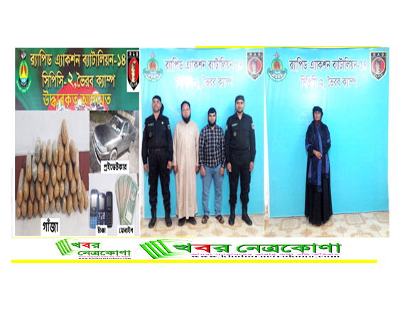 এরই ধারাবাহিকতায়, র্যাব-১৪, সিপিসি-২, ভৈরব ক্যাম্পের একটি আভিযানিক দল গোপন সংবাদের ভিত্তিতে ২৭ নভেম্বর ২০২৩ খ্রিঃ তারিখ রাত অনুমান ০৩.৩০ ঘটিকায় কিশোরগঞ্জ জেলার ভৈরব থানাধীন নাটালের মোড় এলাকায় ঢাকা-সিলেট মহাসড়কের ঢাকাগামী লেনের পাকা রাস্তার উপর অভিযান পরিচালনা করে ১। মোঃ আমান (৫০) (ড্রাইভার), পিতা-মোঃ রৌশন আলী, সাং-দেউস, ২। মোঃ আবু তাহের(৪৫), পিতা-মৃত আঃ মালেক, সাং-কল্পবাস, ৩। মোছাঃ জাহানারা (৫০), স্বামী-মৃত মানিক মিয়া, সাং-দেউস, সর্বথানা- ব্রাহ্মণপাড়া, জেলা- কুমিল্লাদেরকে আটক করেন। এ সময় ধৃত আসামীদের দখলে থাকা ০১টি প্রাইভেটকার তল্লাশী করে (ক) ১০(দশ) কেজি মাদকদ্রব্য গাঁজা (খ) ০৩টি মোবাইল ফোন, (গ) 0১টি প্রাইভেটকার, (ঘ) নগদ ৩৫,০০০/- টাকা উদ্ধার করতঃ জব্দ করা হয়।ধৃত আসামীগন দীর্ঘদিন যাবৎ ব্রাহ্মণবাড়িয়া জেলার সীমান্তবর্তী এলাকা হতে চোরা চালানের মাধ্যমে অবৈধ মাদকদ্রব্য গাঁজা দেশের অভ্যন্তরে বিভিন্ন স্থানে বিভিন্ন ব্যক্তির নিকট বিক্রয় করে মর্মে স্বীকার করে।