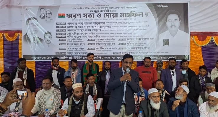 নারান্দিয়া ইউনিয়ন বিএনপির ভারপ্রাপ্ত সভাপতি আব্দুস ছোবান এর সভাপতিত্বে সাধারণ সম্পাদক আফতাব আহমেদ শাহজাহান এর সঞ্চালনায় স্মরণ সভা ও দোয়া মাহফিলে প্রধান অতিথি হিসেবে বক্তব্য রাখেন জেলা বিএনপির সাবেক সাধারণ সম্পাদক ও নেত্রকোনা -৫ (পূর্বধলা) আসনে বিএনপি মনোনীত প্রার্থী আলহাজ্ব আবু তাহের তালুকদার।
