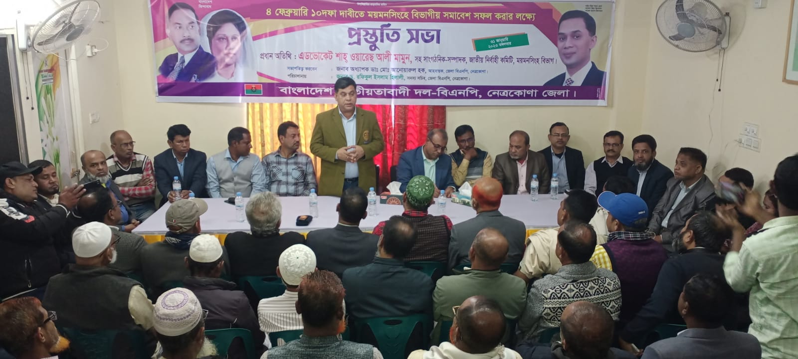 নেত্রকোণা জেলা বিএনপির আহবায়ক অধ্যাপক ডাঃ মোঃ আনোয়ারুল হকের সভাপতিত্বে জেলা বিএনপির যুগ্ম আহ্বায়ক তাজেজুল ইসলাম ফারাস সুজাত এর পরিচালনায় প্রস্তুতি সভায় প্রধান অতিথি হিসেবে বক্তব্য রাখেন বিএনপি জাতীয় নির্বাহী কমিটি