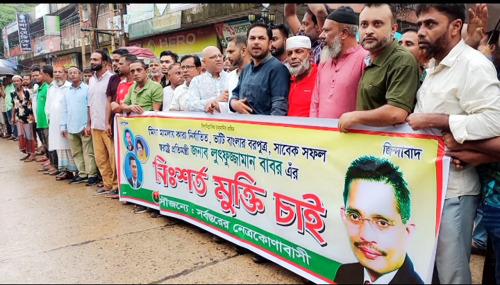 সাবেক স্বরাষ্ট্র প্রতিমন্ত্রী লুৎফুজ্জামান বাবর এর নিঃশর্ত মুক্তির দাবীতে নেত্রকোনায় মানববন্ধনসাবেক স্বরাষ্ট্র প্রতিমন্ত্রী লুৎফুজ্জামান বাবর এর নিঃশর্ত মুক্তির দাবীতে নেত্রকোনায় মানববন্ধন